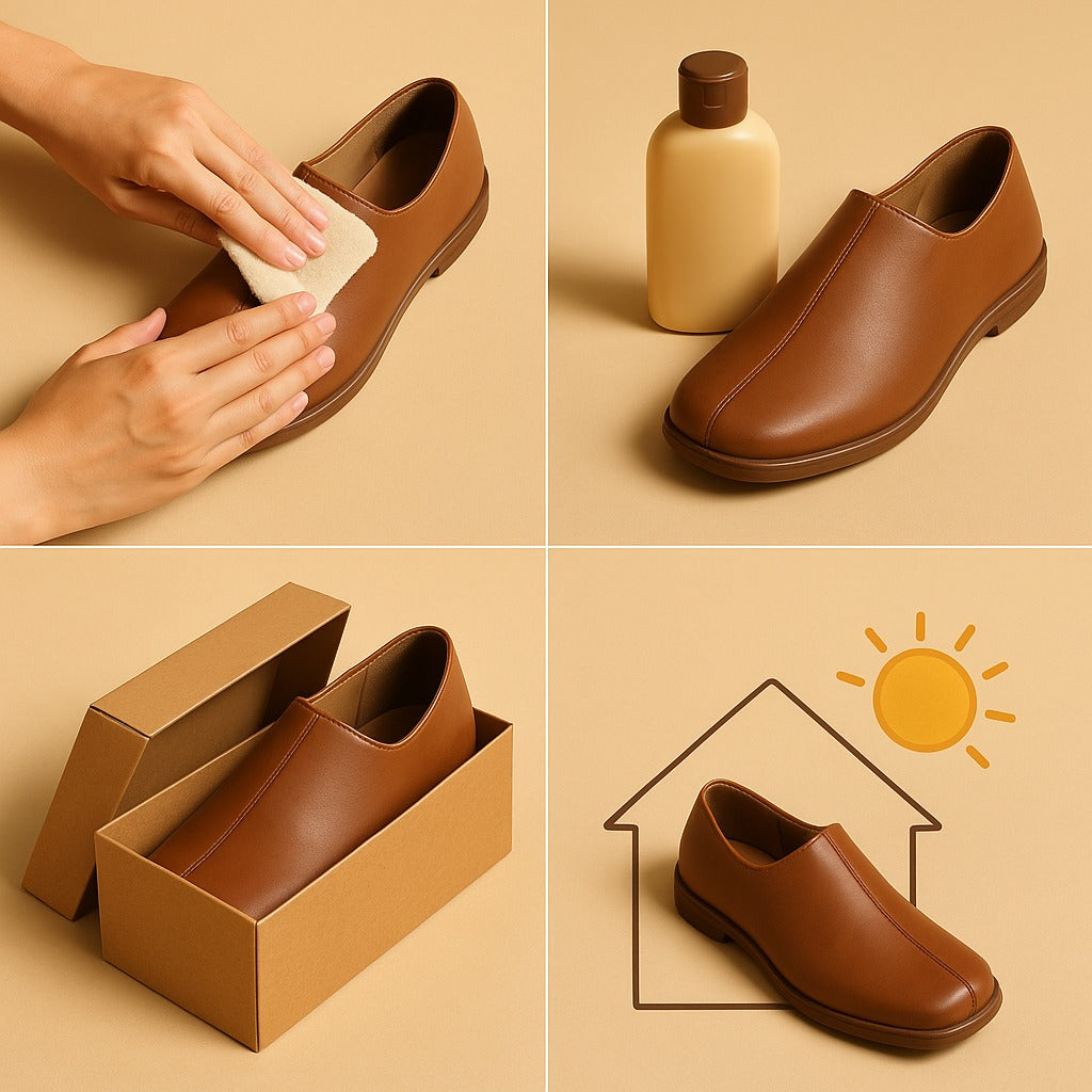 - Use paper stuffing or shoe trees to retain shape.